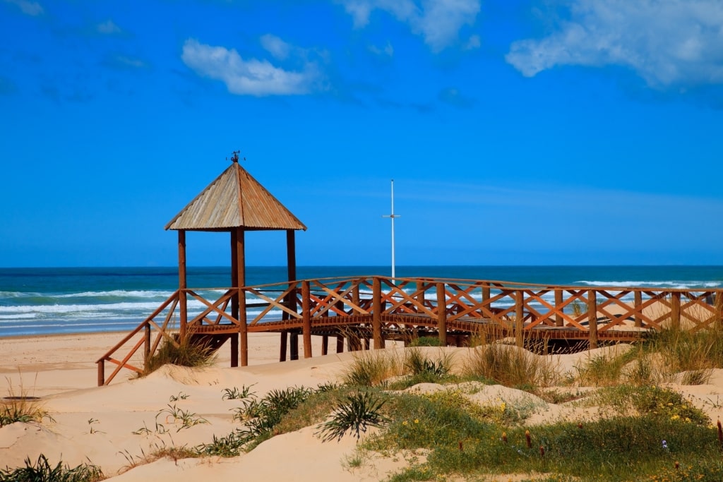 Playa de la Barrosa is located in the vacation resort of Chiclana de la Frontera, between San Fernando and Puerto Real. Close to four miles of golden sand make this stretch one of the best beaches near Cadiz.