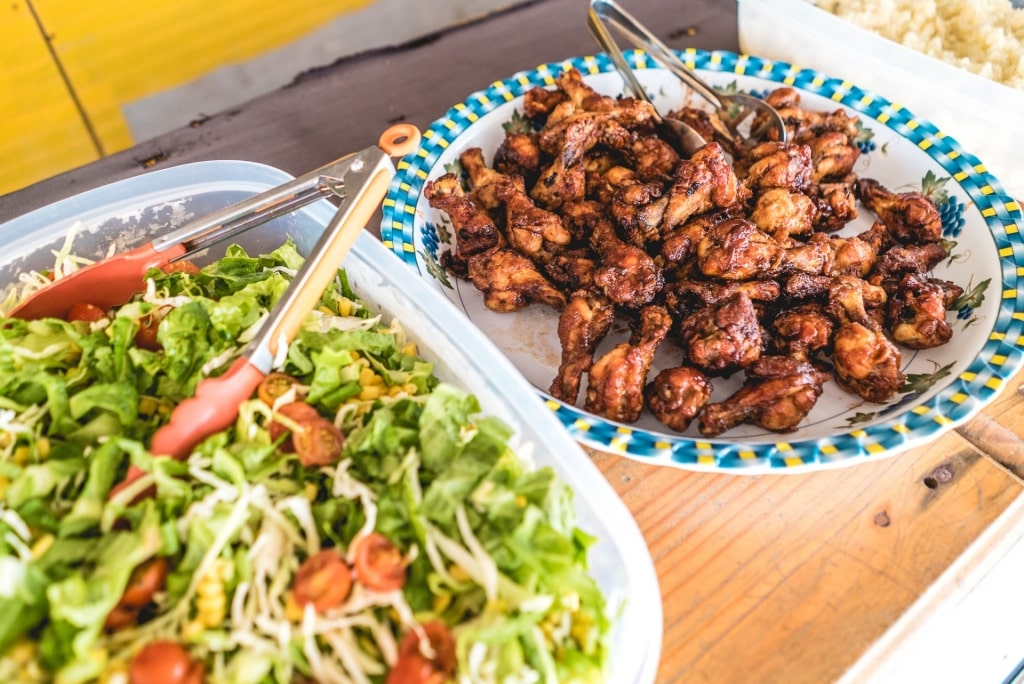 Coming via Jamaica, jerk chicken is now a popular local dish. Jerk is a seasoning of spices, and chilies applied either dry or wet before cooking.