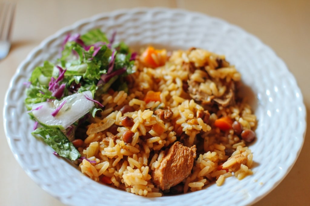 Arroz con gandules can be eaten on its own but is more commonly seen as a side dish. It’s great with seafood dishes or local favorites such as lechón asado (slow-roasted pig).