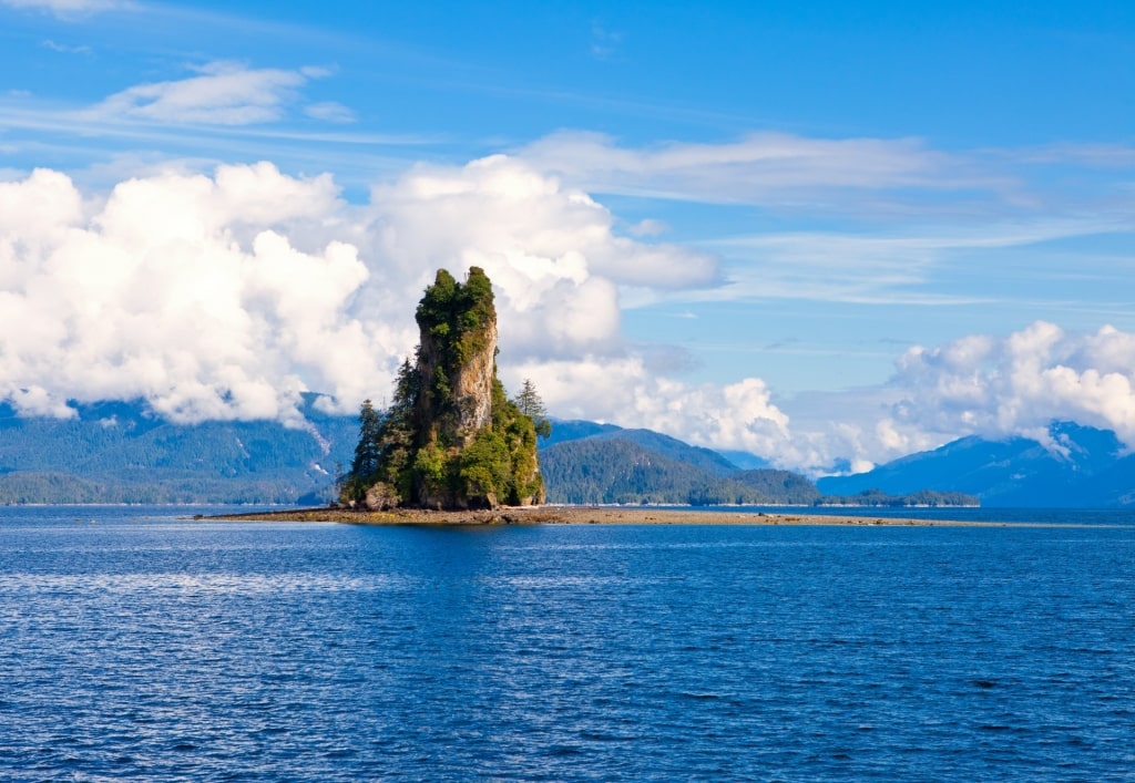 Sitka lies on Baranof Island, a landscape of mirror-like Alaskan lakes that glint in the sunshine, as well as stony beaches, and dense forest.