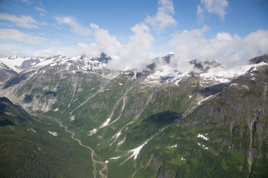 Helicopter tours take off from Skagway, flying low over the canopy of aspen and hemlock of the Tongass National Forest, giving you an idea of just how impenetrable this landscape was, during both summer and winter.
