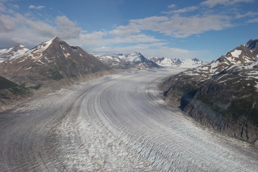 It’s not just an endless sea of ice; you’ll see striped moraines, blue-white crevasses, and pools of water forming high-altitude lakes. The pilot will choose your landing spot; it could be Mendenhall, but there are other Alaskan glaciers to explore, including Taku, Gilkey, Battle, and Herbert.