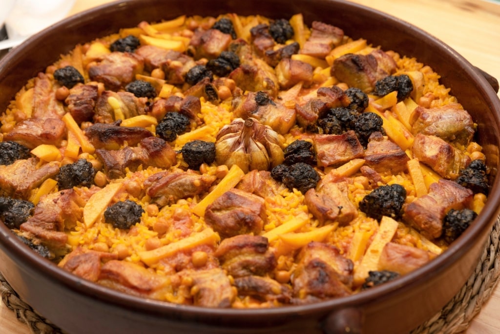 Different from paella, this rice-based dish is cooked in a clay pot in the oven. The rice is cooked with sausage, garbanzo beans, and potatoes, creating a rich, hearty dish. You’ll find it served with aioli, or garlic mayonnaise, on the side.