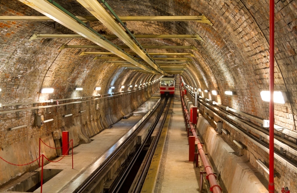 The Tünel is only 1,880 feet long and the ride takes about 90 seconds. Its two modern carriages carry 170 passengers each, running less than five minutes apart.