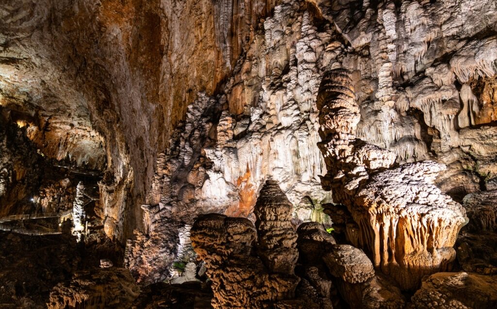 Join a guided tour to learn about the cave’s geology and explore the enormous chambers. Visitors are first led down 500 spiraling steps, 328 feet into the earth, to witness subterranean stalactites, stalagmites, and columns.