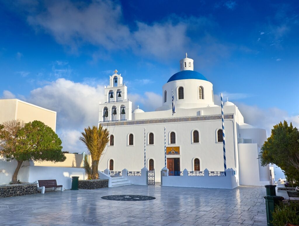 Several of them are worth seeing, including the Greek Catholic Three Bells of Thira, which has incredible views; the Cathedral of Saint John the Baptist; and the Church of Agios Gerasimos.