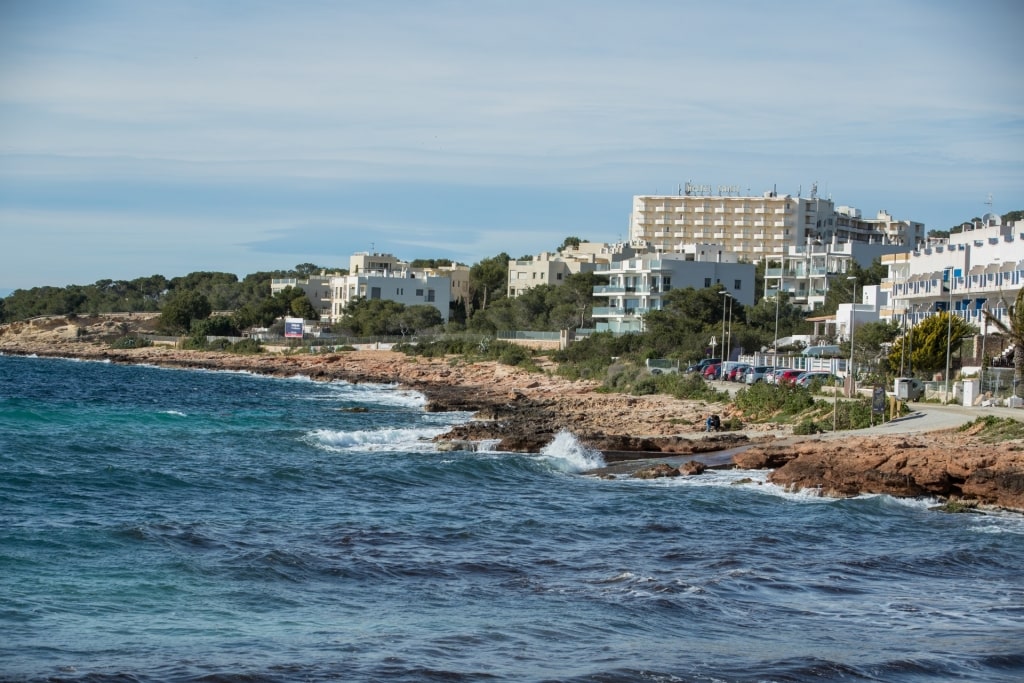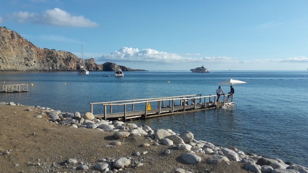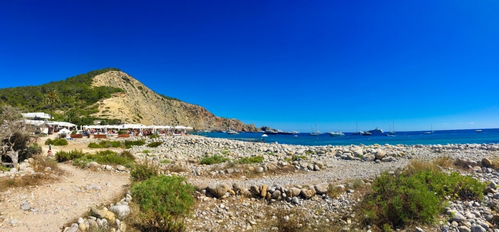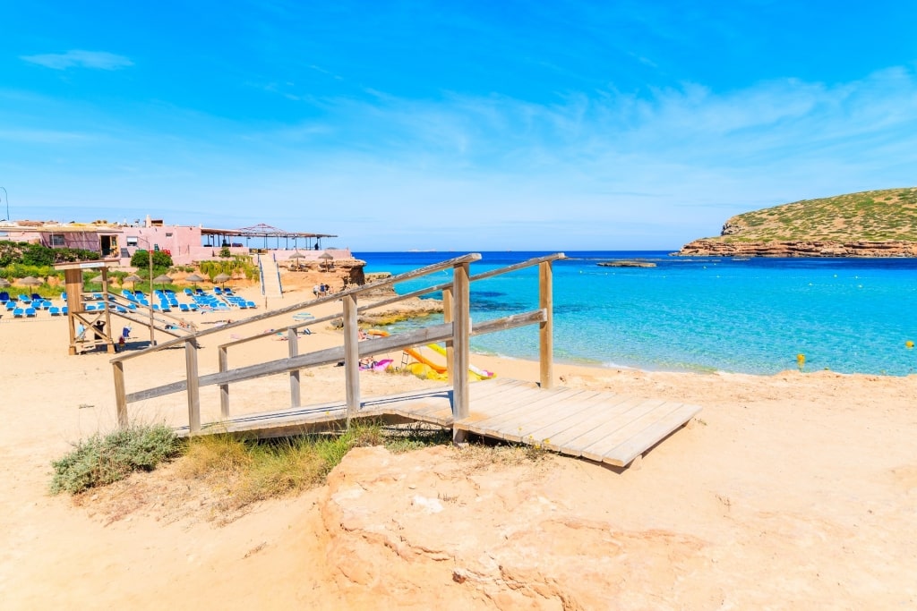 Located about a 20-minute drive from Sant Antoni de Portmany, the beach feels far removed from the main action of one of the island’s busiest resorts.