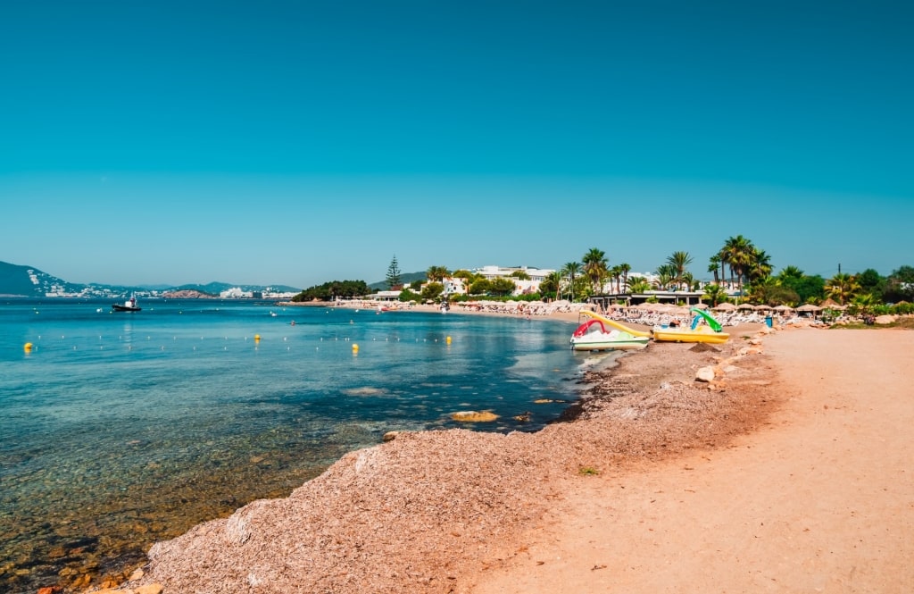 If you’re looking for a taste of Ibiza’s famous beach party vibe, Playa d’en Bossa should be your first stop. There may be far more beautiful beaches in Ibiza, but the people-watching here is hard to top.