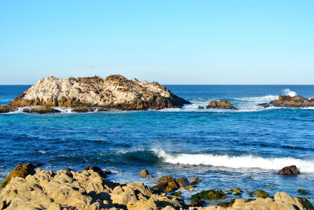 The Monterey Peninsula, a scenic stretch of coastline and pine forests, is surrounded by Monterey Bay to the north, the Pacific Ocean to the west, and Carmel Bay to the south. Waves crash with a fierce splendor on these rocky shores, and colonies of sea lions sunbathe on the flat tops of boulders.