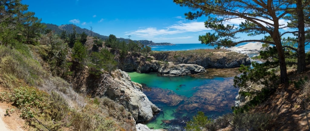 Along Cypress Grove Trail, known for its stand of cypress trees, you might catch sight of migrating gray whales between December and May.