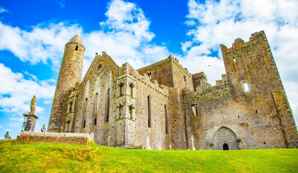 It dominates a set of medieval buildings that includes Cormac’s Chapel, notable for having Ireland’s only surviving Romanesque frescoes. The chapel was built for King Cormac Mac Carthaigh about 1130 in Irish Romanesque style.