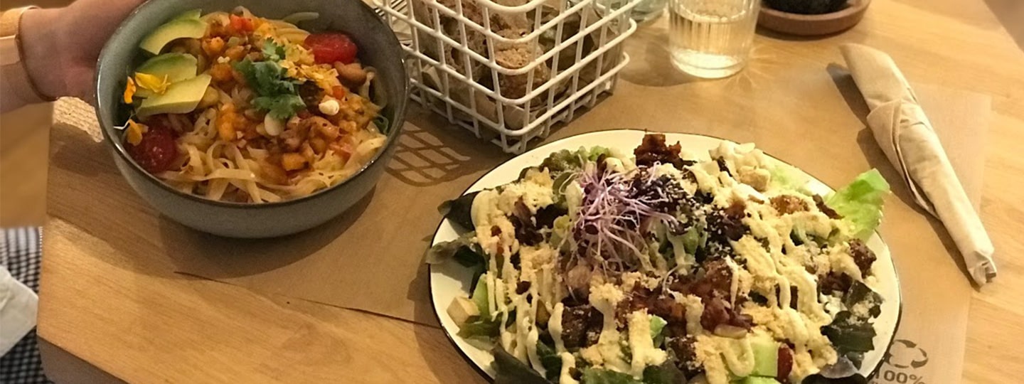 Once in the city’s center, we plugged in the restaurants we found to see which one was closest. We found that we were walking distance from a restaurant called Paper Plane, so we walked that way, stopping for fresh-squeezed orange juice from a local market. It was so refreshing! At Paper Plane, we shared pad thai and the best caesar salad we’ve ever had! We would literally travel back to Nice specifically for this salad! All vegan of course.