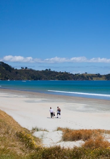 Head to Waiheke Island’s largest swath of sand, just a 45-minute ferry ride from the city of Auckland. The wide beach stretches for a little over one mile and is a popular spot for walking, picnicking, sunbathing, and dining along the shimmering white sands.