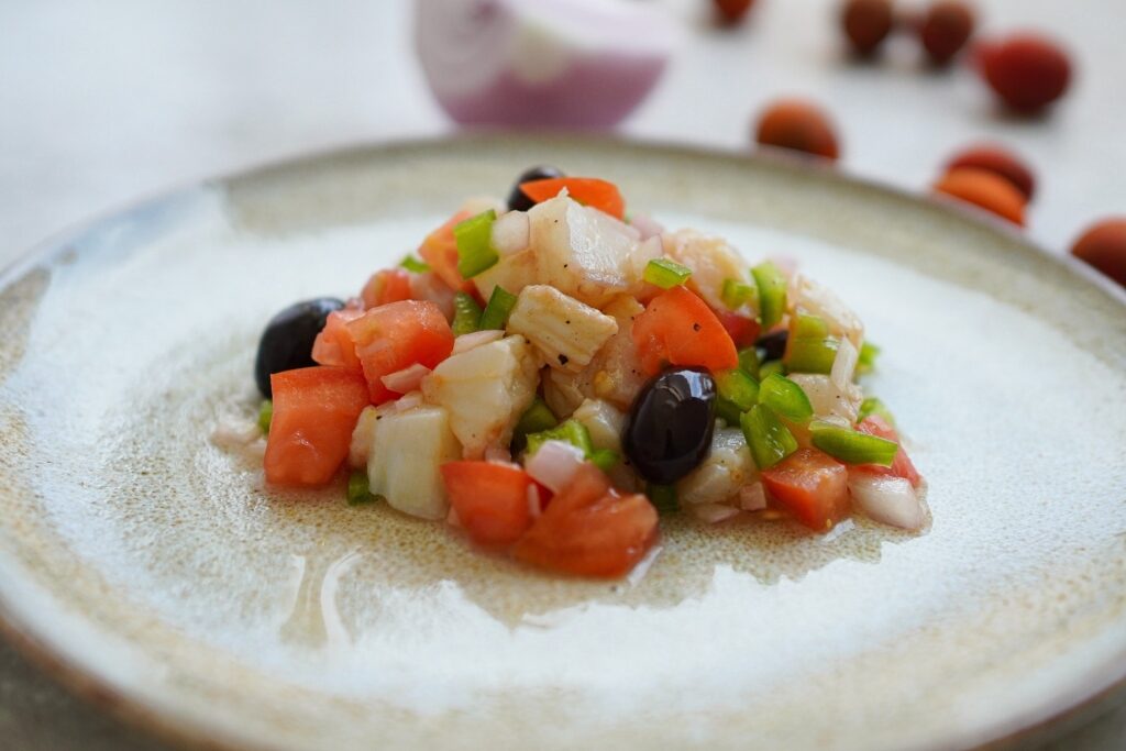 Order esqueixada at La Barra Perelló—a cod tasting bar at Bacallaneria Perelló 1898—within Mercat del Ninot, a restored market that first opened as an open-air market in the 19th century. During the 20th century, the market became covered and later, restored and expanded.