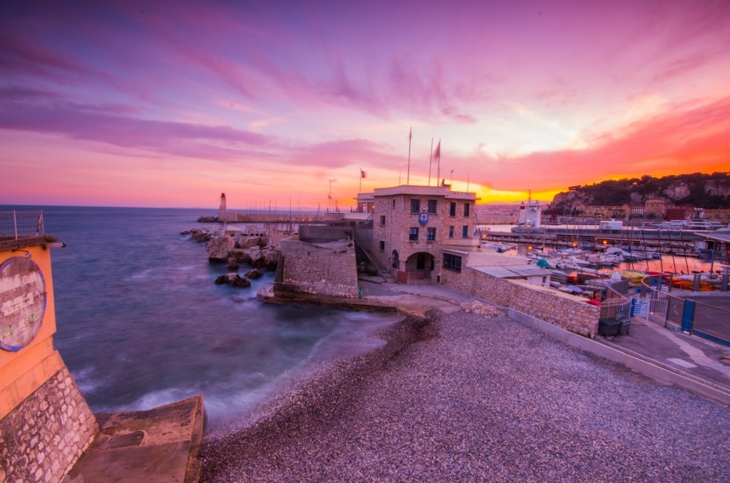 Located at the westernmost end of Nice’s seafront, Plage Publique de Carras is often less visited than some of Nice’s more central shores. There’s a small marina next to the beach where a row of fishing boats is often moored.