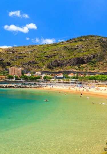 One of a few golden-sand beaches on Madeira—where pebble bays and dark volcanic sands rule supreme—Machico (also known as Praia da Banda d’Além) is a calm and inviting location for an island beach day.