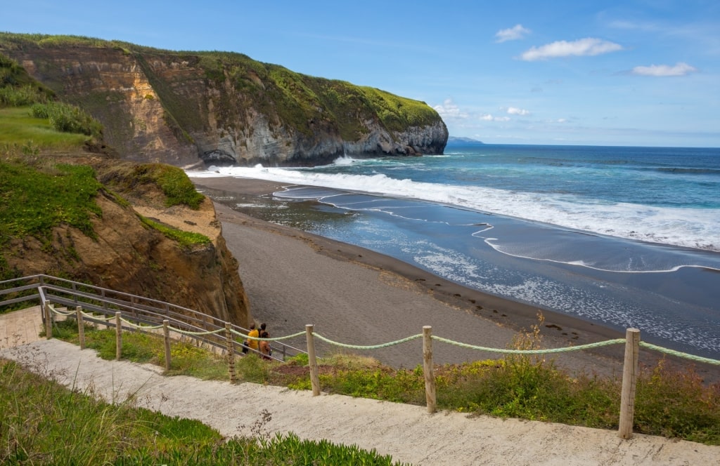 If you’re seeking a less adrenaline-fuelled beach day, Praia do Areal de Santa Bárbara is still a breathtaking side trip from Ponta Delgada.