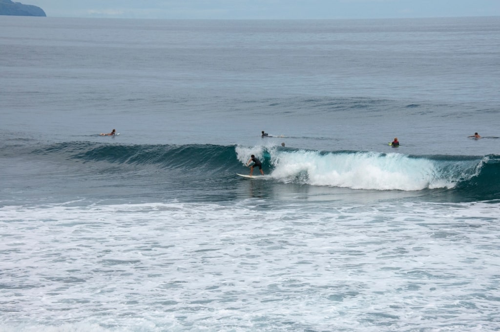 Surfing in Praia do Areal de Santa Bárbara, São Miguel