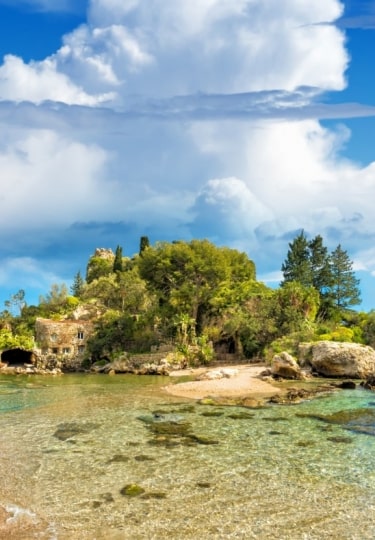 Rising from the shallow, pebble-lined ocean bed of a tranquil bay, Isola Bella—literally “beautiful island”—has a whimsical, almost fairytale-like air to it. It’s one of the best places to visit in Sicily.