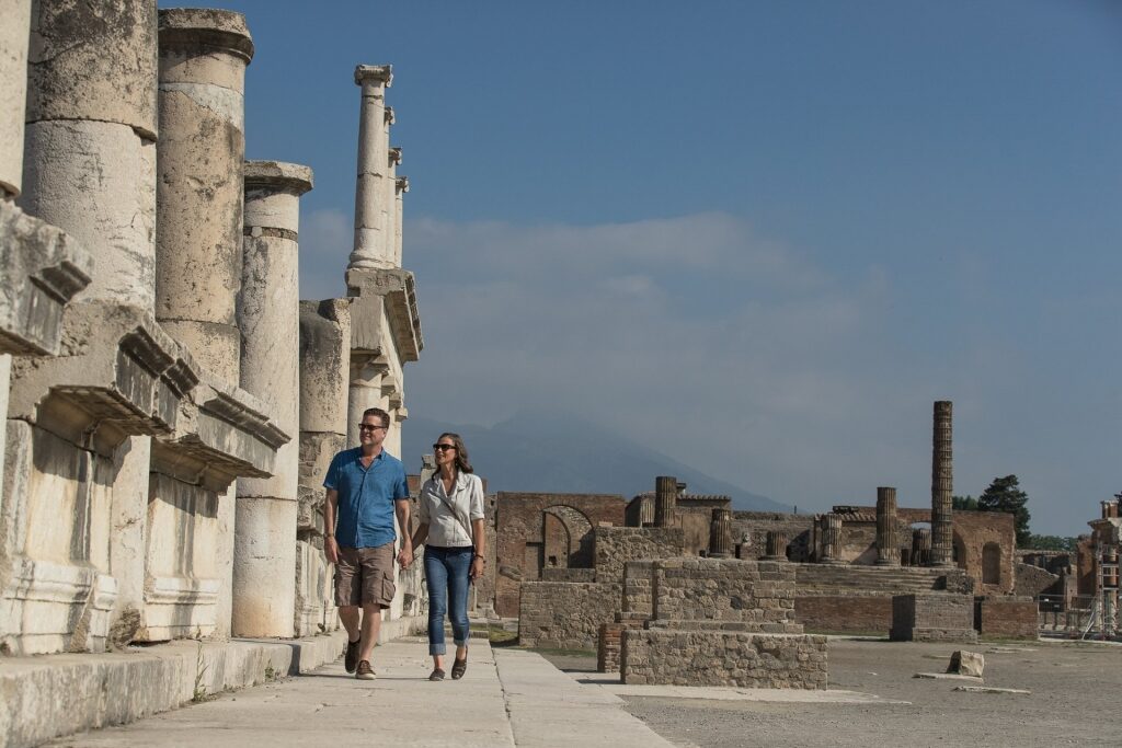 In the city of Naples, stay and explore the many archeological sites and historic city center, or board a ferry and head off towards Capri, a dreamy island once favored by Roman emperors. Shop for designer items in the town square, enjoy a seaside lunch, and sneak in a kiss inside the famous Blue Grotto, where the sun’s reflection creates a magical azure glow in the water underneath.