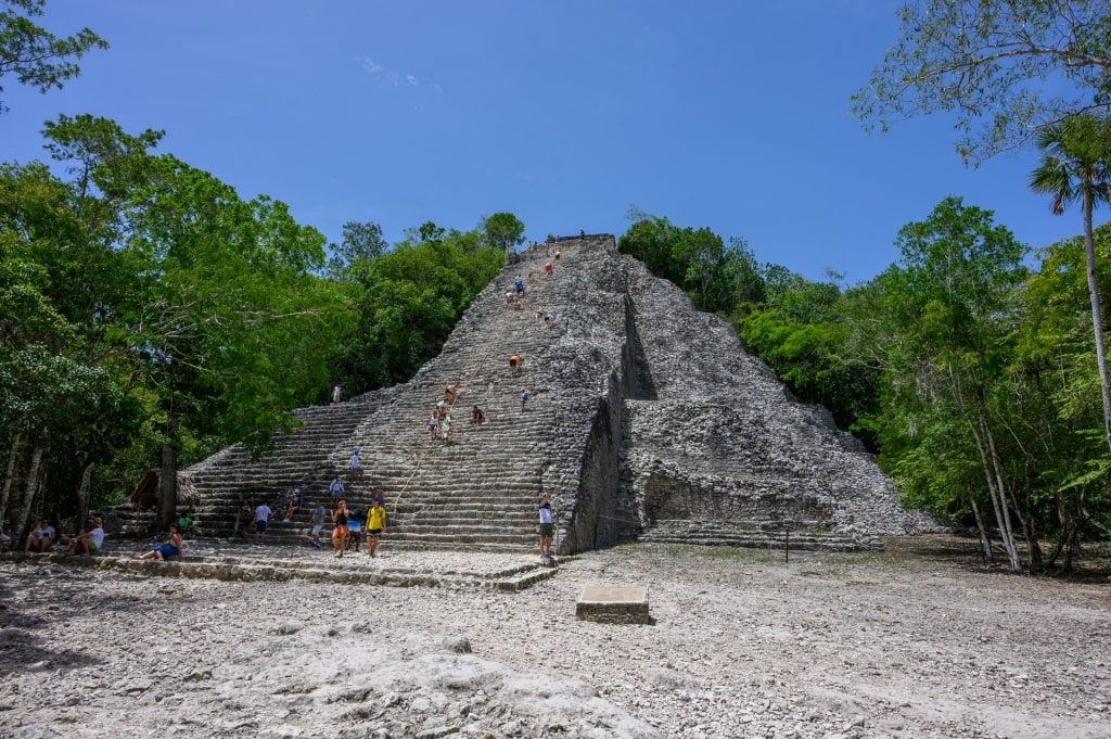 Coba is also home to Ixmoja, the Yucatan Peninsula’s tallest pyramid, coming in at 130 feet tall. It’s one of the few Mayan ruins where you can climb up to its peak for incredible views of the surrounding forest.