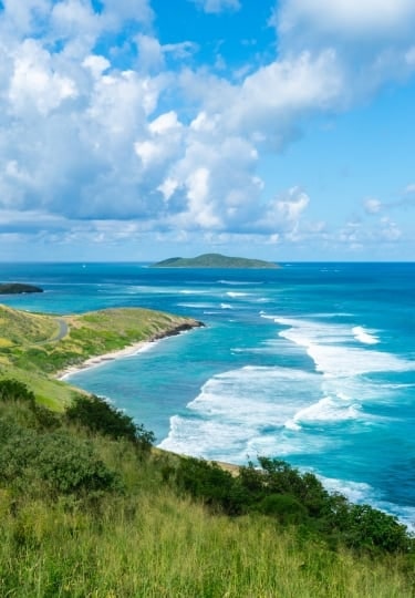 Admire the gorgeous scenery full of tropical rainforests, beautiful beaches, and ancient forts from high up above. Learn all about the fun water sports and activities you can do on the island like ATV tours, snorkeling, and cricket.