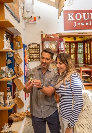 While you can always grab a quick souvenir before your vacation ends, there are also plenty of opportunities to find local spots during your Greek vacation. You might land on a piece of artwork commissioned by a local painter, or leather sandals crafted by hand by an artisan on the coast.