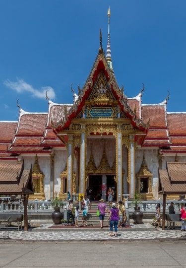 Wat Chalong, or Wat Chaitararam, is the biggest and most revered Buddhist temple in Phuket, and probably one of the most striking temples in all of Thailand thanks in no small part to its stepped, multi-tiered roofs and dazzlingly red tiles.
