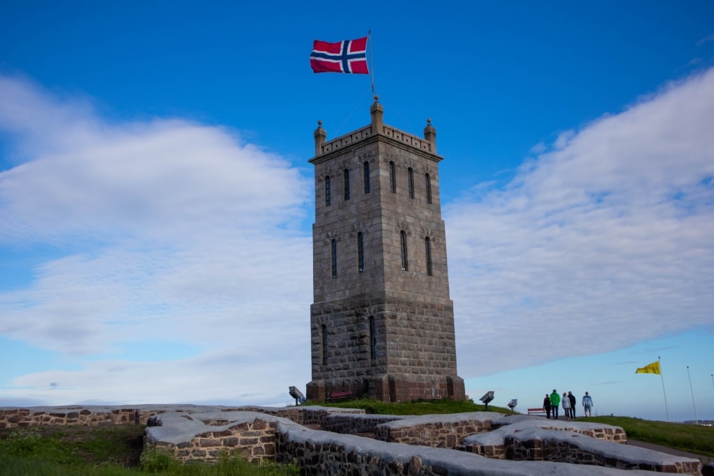 The tower, built as an observation lookout in 1888, stands 56 feet tall, with sweeping views of the town below. Inside, you can see the original cross from the town’s Church of Our Lady, as well as inscriptions from three kings: King Hakon VII, King Olav V, and most recently, King Harald V.