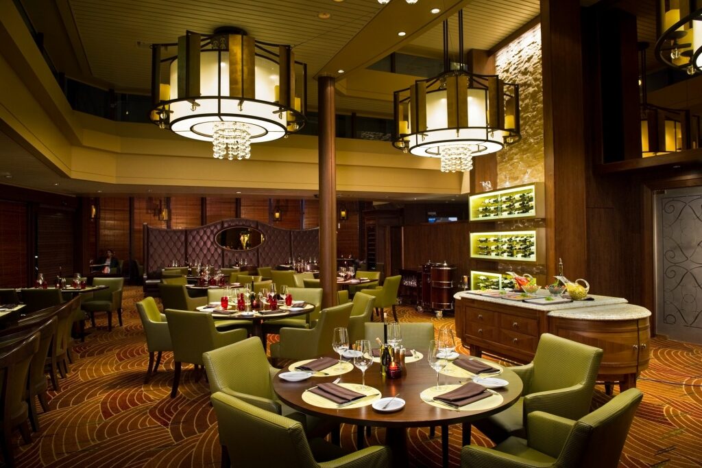 Cutting-edge Luminae is reserved for guests of the Retreat. The menu at Luminae is exclusive, meaning you won’t find these dishes anywhere else on board. Sample menu items include Alaskan halibut, Maine lobster tagliatelle, truffle risotto, and creamy burrata with pesto.