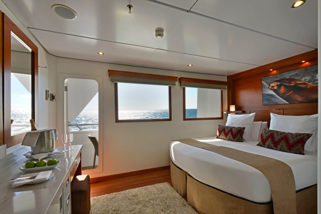 With an outward-facing design and an infinite veranda, this suite will make you feel even more connected to the Galapagos Islands with each day at sea. With the touch of a button, you can transform your sky suite into an open-air room.