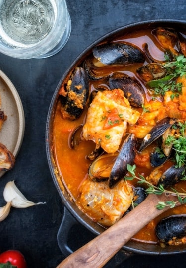 Served with a herby bowlful of bouillon on the surface of which float croutons, you combine fish and broth for either a memorable starter or epic main.