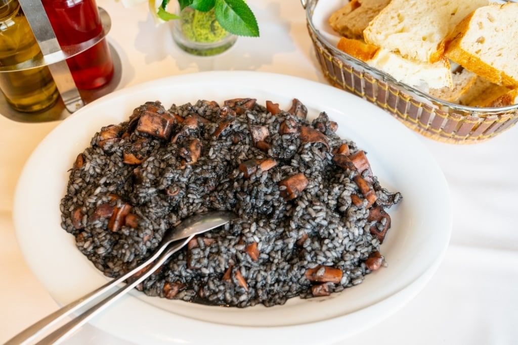 Squid ink risotto features on pretty well every menu along the coast and is one of Croatia’s most famous dishes. This rich risotto is packed with squid and sometimes other seafood, its black color and intense flavor coming from the squid ink.