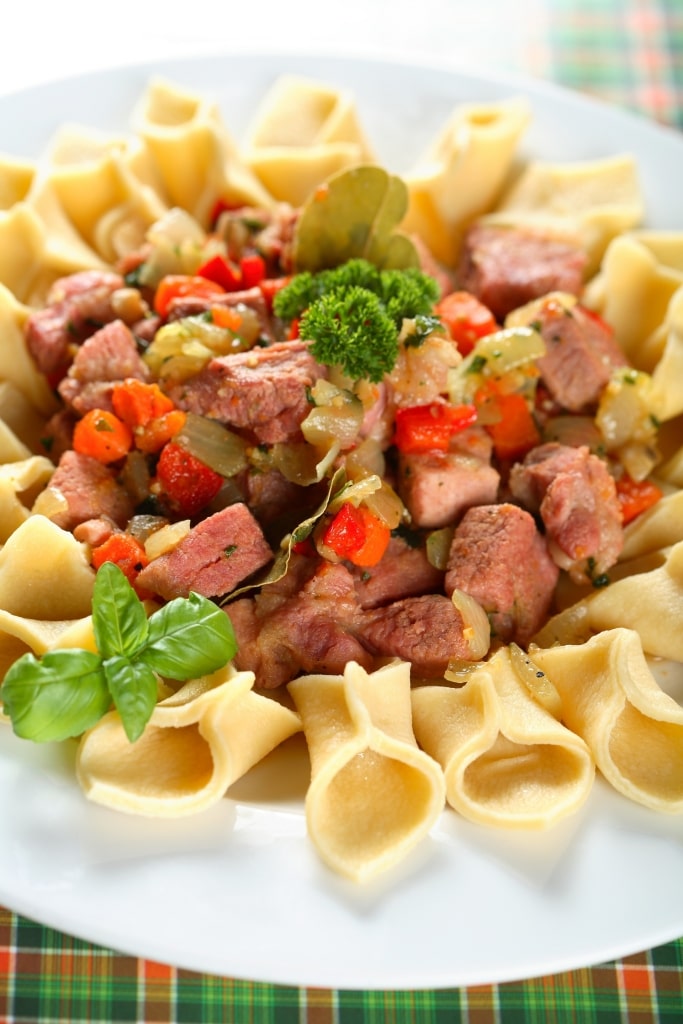 The stew mixes at least three types of meat, usually beef, pork, and lamb—but originally featured venison. Warmed up by sweet paprika and hot chili peppers, it’s a hearty winter dish.