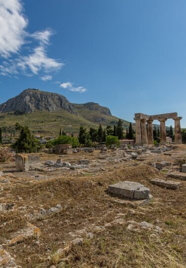 Tag on a visit to Ancient Corinth, a short drive from the canal, to explore the fascinating Archaeological Museum and the gleaming Temple of Apollo, with its seven remaining columns.