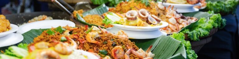 Dive into Singapore’s hawker food scene with must-try dishes like chili crab, satay, and laksa served at vibrant, flavorful open-air centers.