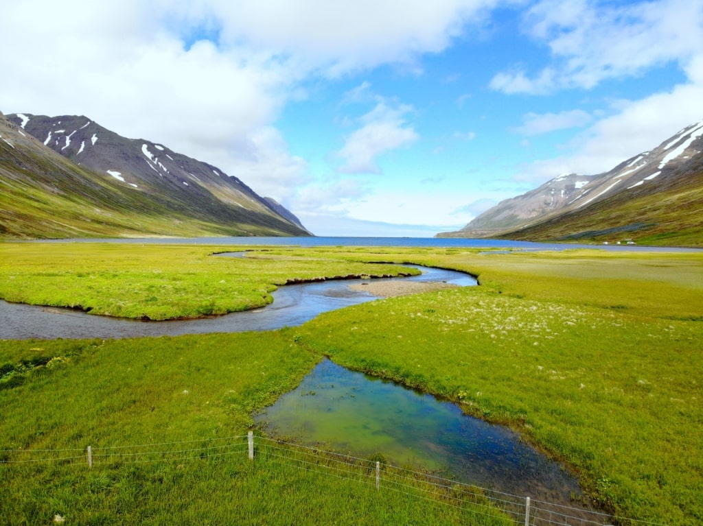 There are no towns surrounding Héðinsfjörður, just the green, sloped valley, which is a wonderful spot to enjoy a peaceful hike in Iceland. The only sign of human life around the fjord is the remains of a farm, Hvanndalir, which was abandoned in 1951.