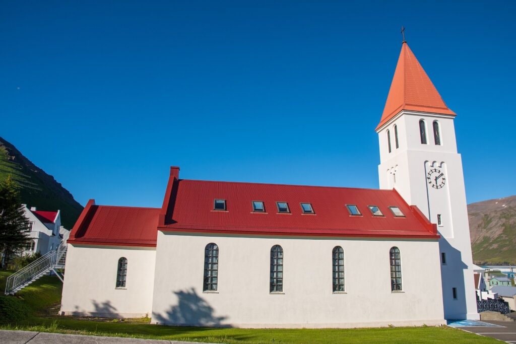 At the heart of the fjord is a small town, also called, Ólafsfjörður, an unhurried fishing village, with a couple of cozy cafés, a pretty white, yellow, and gray church, and a natural history museum.