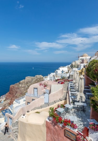 Known for its blue-domed churches, whitewashed houses, and gorgeous views of the Aegean Sea, Oia in Santorini has a romantic vibe. In April, it’s the perfect place for strolling around.