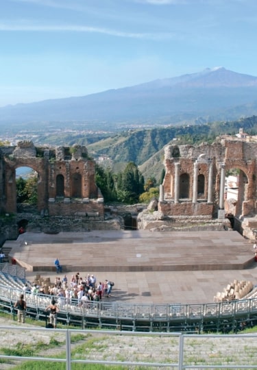 On top of it all this bijou pleasure spot fits in a heavyweight historical site: its astounding Greek Theater, with magnificent views of Etna in the distance. In summer, the theater is used as a venue for concerts.
