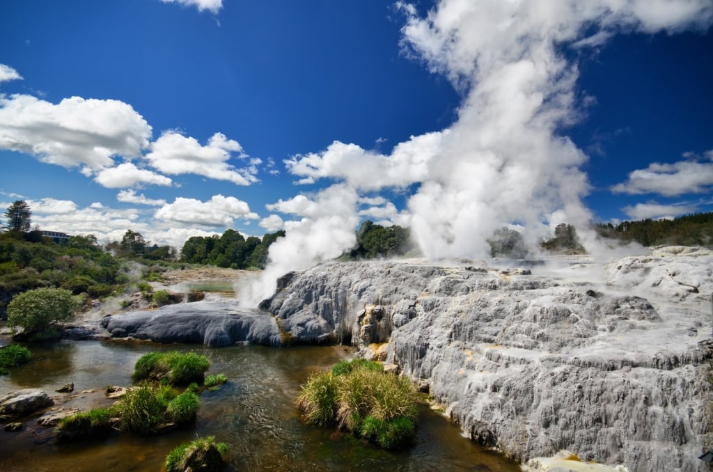 Part of the Te Puia Rotorua Geothermal Park, it blows around 20 times a day with each explosion sending spurts of blistering steam into the air for up to 20 minutes.