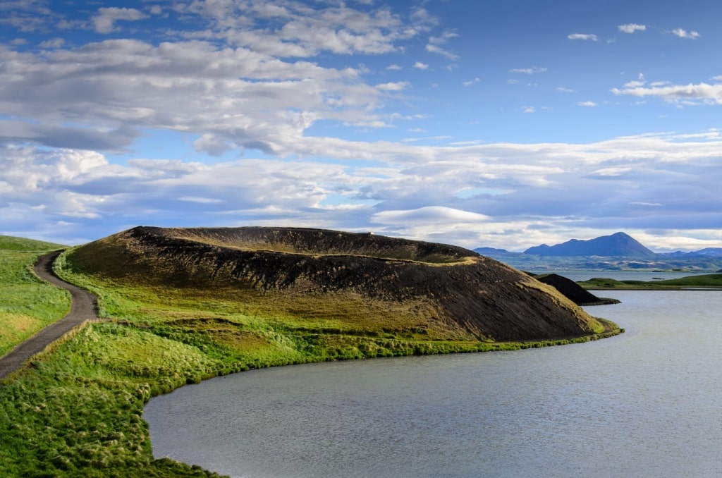 The country’s rough black volcanic landscape is a wonderful contrast to the flat waters of Lake Mývatn, one of the most beautiful places in Iceland. Sitting amid bubbling mud pools, steaming vents, hot pools, and misty waterfalls, it’s an oasis of calm.