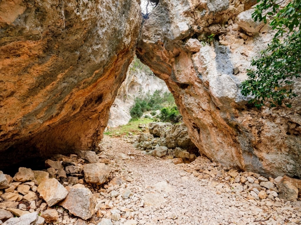 There are two ways to reach Cala Goloritzé, either by boat or by hiking the verdant ravine path leading to the cliff edge, 1,500 feet above the beach. A staircase carved into the cliffs allows direct access down to Cala Goloritzé.
