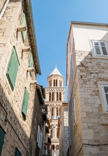 Inside, you’ll find the original octagonal mausoleum with marbled columns circling it, plus the Romanesque bell tower, which took several hundred years to build, offering you spectacular views of Split Old Town.