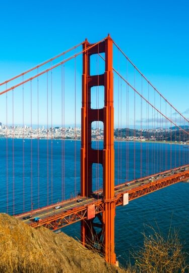 The design changed to a suspension span with the capability of swaying up to two feet in high winds. Despite the challenges of building the first bridge support in the open ocean, the famous structure with its art deco towers and “International Orange” color has come to be the world’s most photographed bridge.
