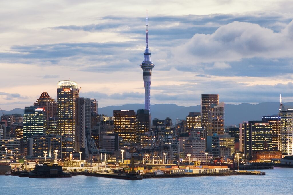 Cruises to New Zealand sometimes overnight in Auckland, where you can take a sunset stroll along Waitemata Harbour and watch the city light up as dusk falls, the skyline reflected in the water.