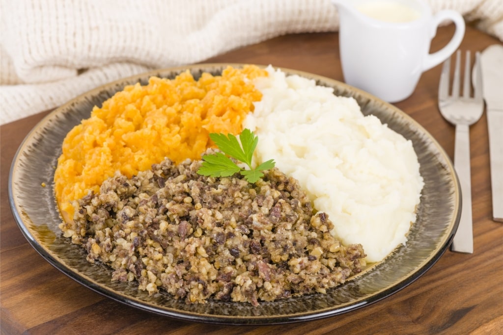 You can’t go to Scotland without tasting Haggis, a classic Scottish dish traditionally served with neeps and tatties, mashed swede or turnip and potatoes. Cullen skink, a smoky fish soup, and Aberdeen Angus beef might feel like safer ground.