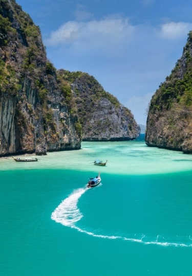 To avoid the most crowded beaches in Phuket, join a boat excursion to Phi Phi Islands National Park, where you can disembark onto white sands and pristine waters, or snorkel to observe some of the richest marine sea life in the Andaman Sea.