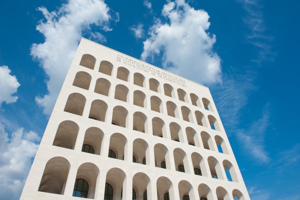 Today, it’s a residential area as well as a business district. Its most iconic building is the travertine-clad Palazzo della Civiltà Italiana (also known as the “Square Colosseum”) which today houses the headquarters of Fendi.