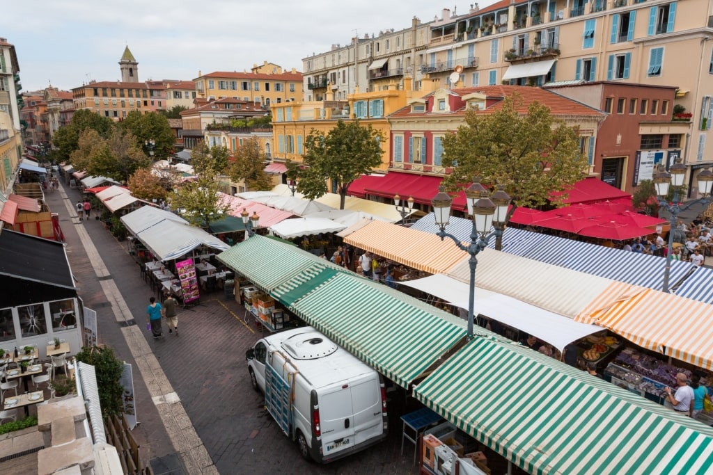 Visiting this photogenic market is one of the best things to do in Nice. Admire the blushing blooms, including sunflowers, roses, tulips, peonies, dahlias, and lilies, among others, displayed under striped awnings.